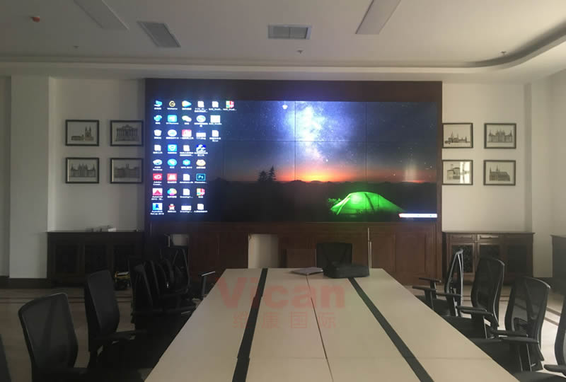 湖南某旅游局的這套會(huì)議大屏由維康國際提供,采用3x4拼接、55寸1.7mm液晶拼接屏,在中式辦公空間里散發(fā)內(nèi)斂氣質(zhì)。