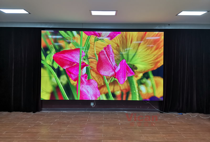 這套會(huì)議大屏由3行3列、55寸液晶拼接屏組成,超窄邊設(shè)計(jì),有著很好的一體化顯示效果,主要用來視頻會(huì)議、會(huì)議信息顯示使用。