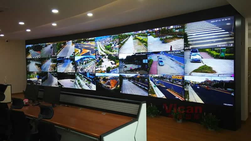 維康國(guó)際為廣州荔湖街道辦提供的這套監(jiān)控大屏采用3行8列,55寸3.5mm液晶拼接屏,用來做視頻監(jiān)控指揮使用。