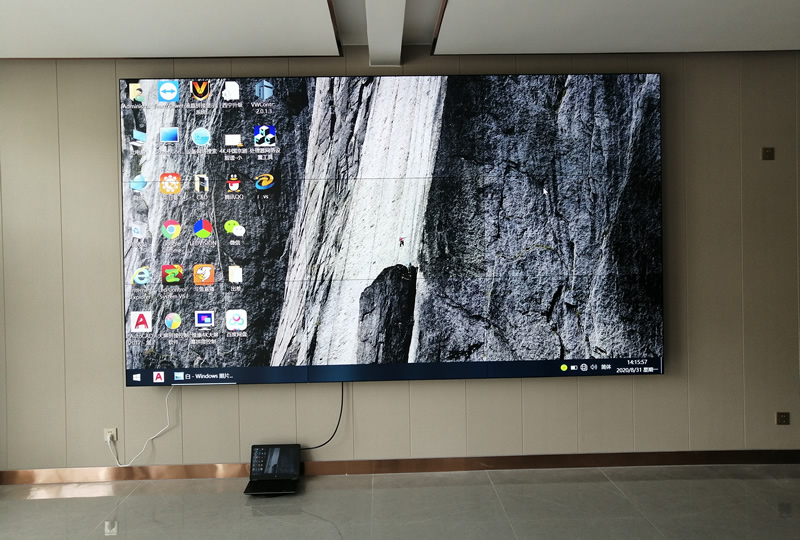 該案例中,維康國際為日照莒縣如意社區(qū)黨群服務(wù)中心提供一套會議大屏,采用3x3拼接、55寸0.88mm液晶拼接屏,超窄邊設(shè)計,畫面顯示清晰亮麗,一體化顯示效果很好,如上圖所示。