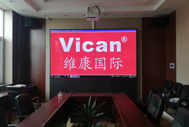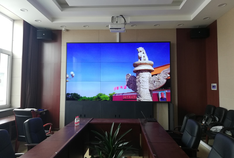 該案例中,維康國際為遼寧沈陽某檢察院提供一套會議大屏,采用3行3列,機柜式安裝安裝的55寸液晶拼接屏,超窄邊設(shè)計,雙邊物理拼縫僅有0.88mm,有著很好的大屏畫面一體化顯示效果。