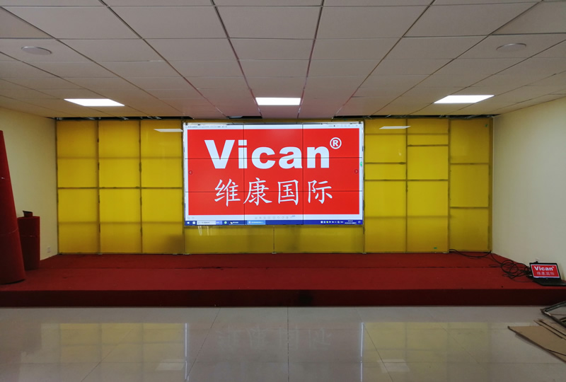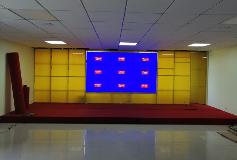 該案例中,維康國際為榮成赤山集團(tuán)物業(yè)服務(wù)公司提供一套會(huì)議室大屏,采用3x3拼接,55寸液晶拼接屏,大屏雙邊拼縫為3.5mm,大屏幕高清顯示,清晰亮麗,如上圖所示。