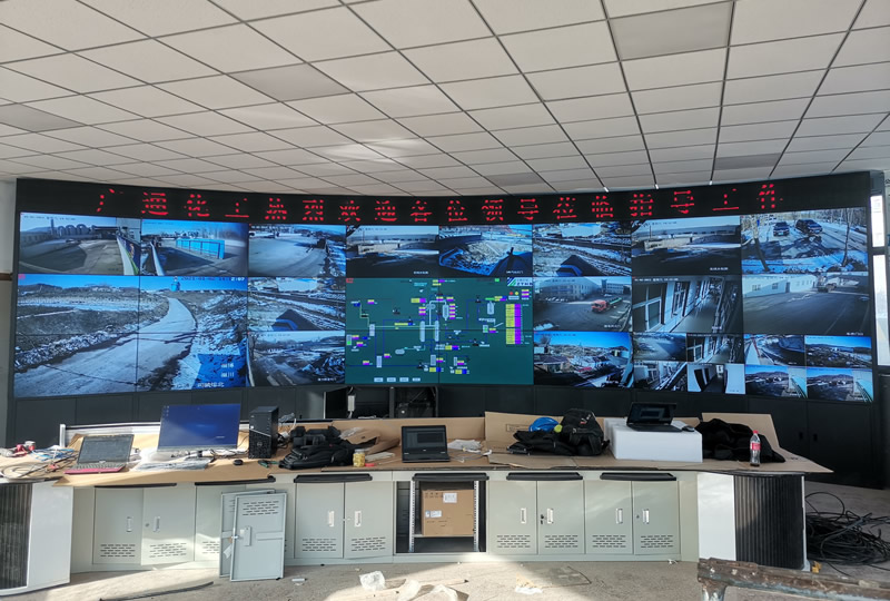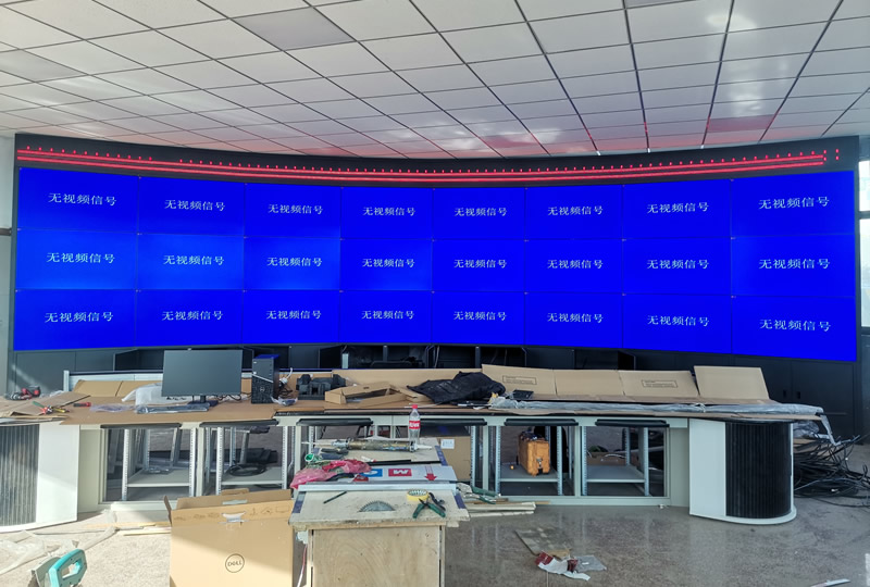 本案例中,維康國際為中騰環(huán)保提供一套指揮中心大屏,主要由3X8拼接、55寸3.5mm液晶拼接屏組成,大屏幕顯示清晰亮麗,雙邊拼縫較小,采用機柜式弧形安裝,更顯高檔大氣,如上圖所示,主要 用來顯示監(jiān)控畫面及指揮調(diào)度。