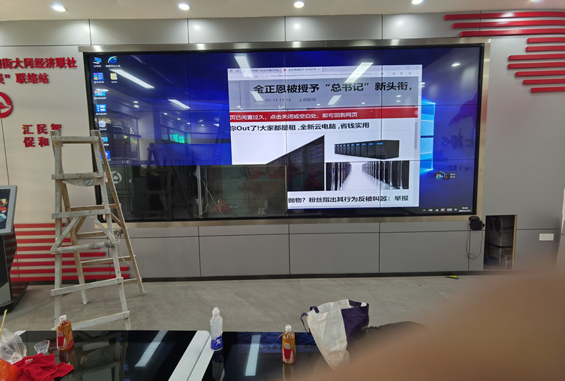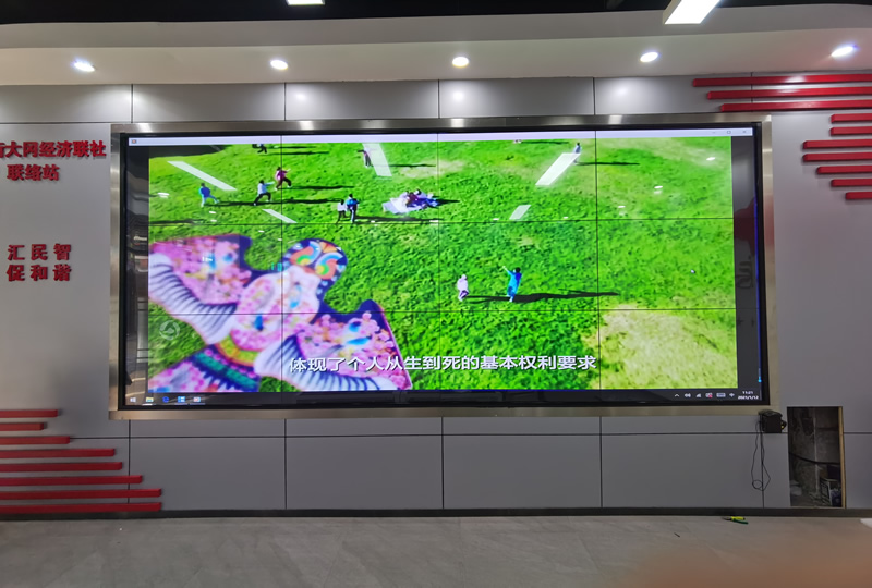 本案例中,是維康國(guó)際為廣州大崗村委提供的一套觸摸顯示屏,由3行4列、55寸液晶拼接屏,搭配紅外觸摸逛組成,如上圖所示。