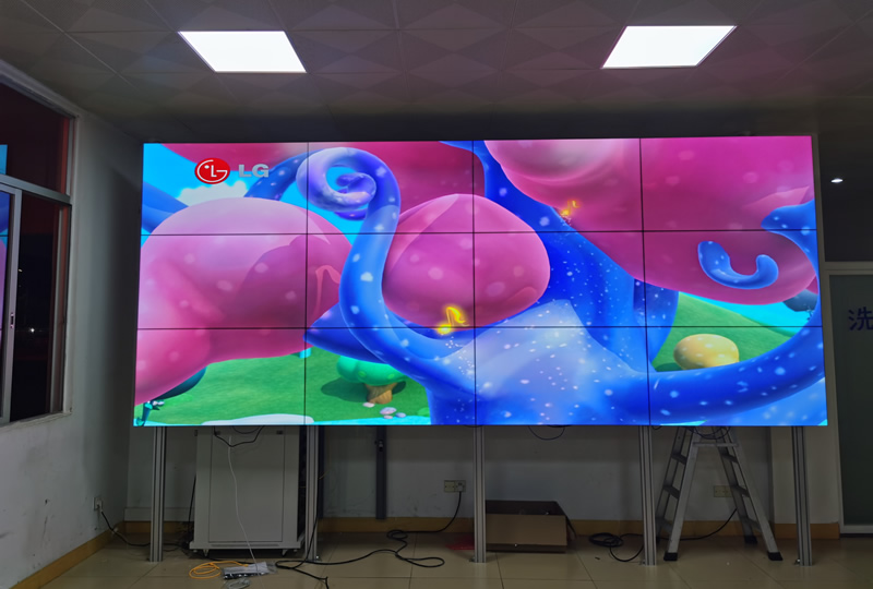 該案例中,維康國際為廣東揭陽某實業(yè)公司提供一套大屏幕顯示產(chǎn)品,主要用來會議顯示使用,由3x4拼接、55寸液晶拼接屏組成,屏體采用三星1.7mm原裝面板,如上圖所示,大屏幕畫面清晰亮麗,一體化顯示效果好。