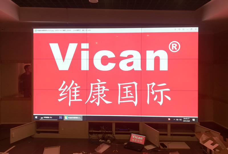 本案例中,維康國際為深圳市前海灣某健身會(huì)所提供一套高清顯示屏,采用3x3拼接、55寸液晶拼接屏,屏體采用LG原裝面板,物理拼縫僅0.88mm,如上圖所示,大屏畫面清晰、有著很好的一體化顯示效果。