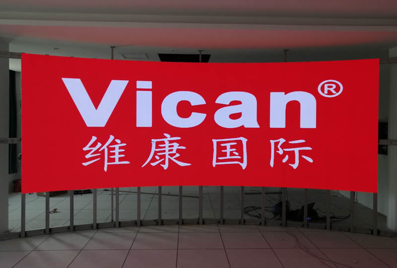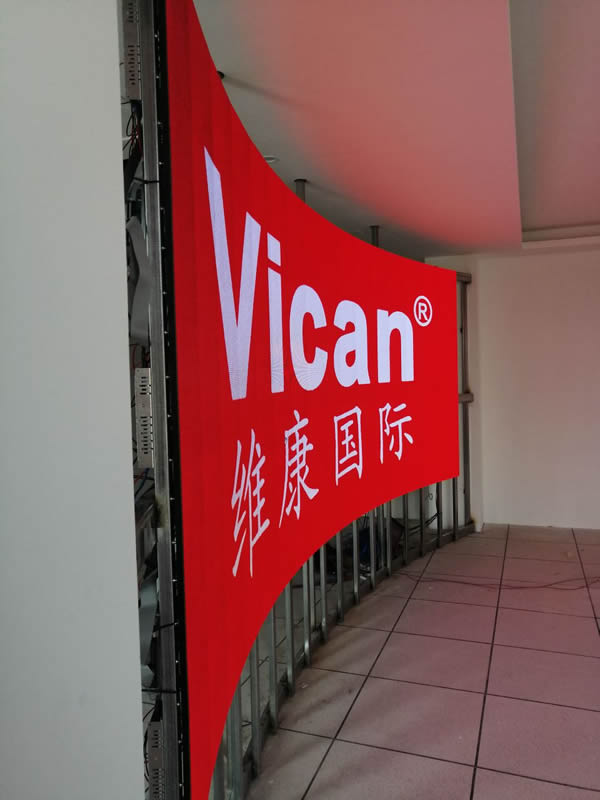本案例中,維康國際為廣州天河某軟件公司提供一套展廳LED顯示屏,采用弧形安裝方式,COB小間距技術(shù),有著更好的顯示效果,如上圖所示。