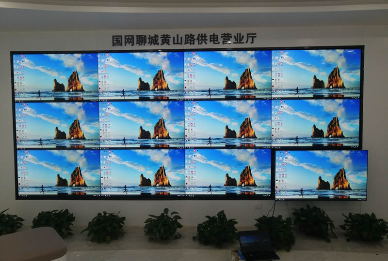 本案例中,維康國際為國家電網(wǎng)聊城供電公司營業(yè)廳提供一套拼接屏,采用3x4拼接、55寸液晶拼接屏,如上圖所示。