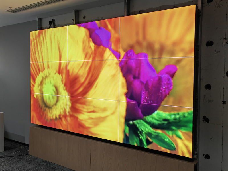 本案例中,維康國際為北京家宅融智科技有限公司提供了一套高清無縫大屏,由3行3列、46寸電子無縫拼接屏組成,如上圖所示,大屏幕畫面的一體化顯示很好,沒有黑色邊框的影響,可以展現(xiàn)出更好的視覺效果。