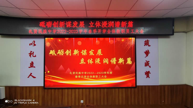 本案例中,維康國際為北京禮賢民族中學提供兩套LED顯示屏,一組安裝在會議室,另一組安裝在室內舞臺,采用P2全彩系列,大屏幕顯示清晰,一體化效果好,無縫隙顯示。