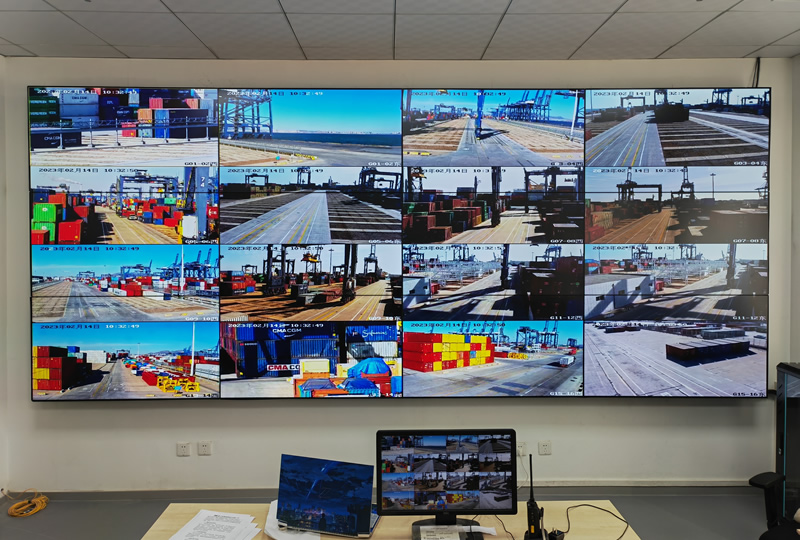 本案例中,維康國際為大連碼頭集裝箱公司提供一套監(jiān)控大屏,采用3行4列,55寸液晶拼接屏,1.7mm工業(yè)級(jí)液晶面板,大屏幕顯示清晰,性能穩(wěn)定。