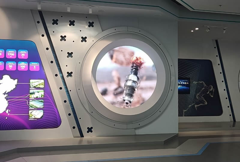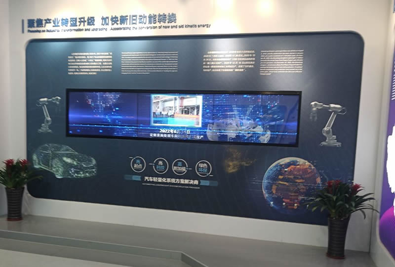 本案例中,維康國際為山東魏橋創(chuàng)業(yè)集團(tuán)的展廳提供了多套多形狀的LED顯示屏,如上圖所示,由梯形、圓形、長方形拼接組成,大屏幕顯示清晰,視覺體驗效果好。