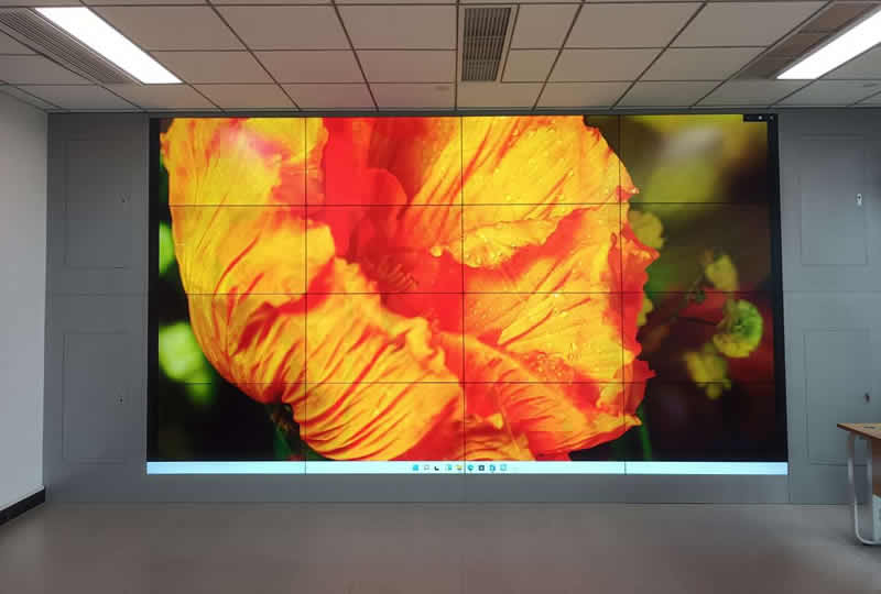 本案例中,維康國際為深圳福田某軟件公司提供一套信息展示大屏,采用4行4列、55寸液晶拼接屏,大屏幕分辨率高、顯示清晰、視覺效果好。