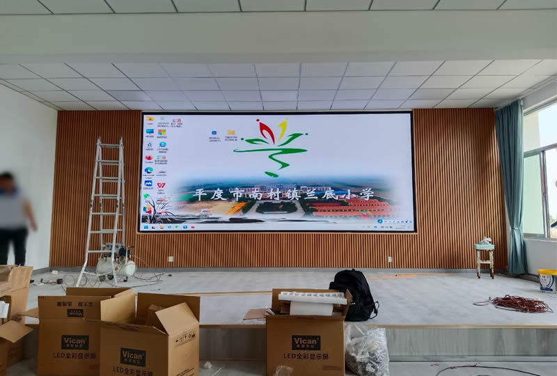 本案例中,維康國(guó)際為平度市蘭底小學(xué)提供一套會(huì)議室大屏,采用P2點(diǎn)間距的LED顯示屏,顯示面積約10平方米,大屏幕顯示清晰,視覺(jué)體驗(yàn)效果好。