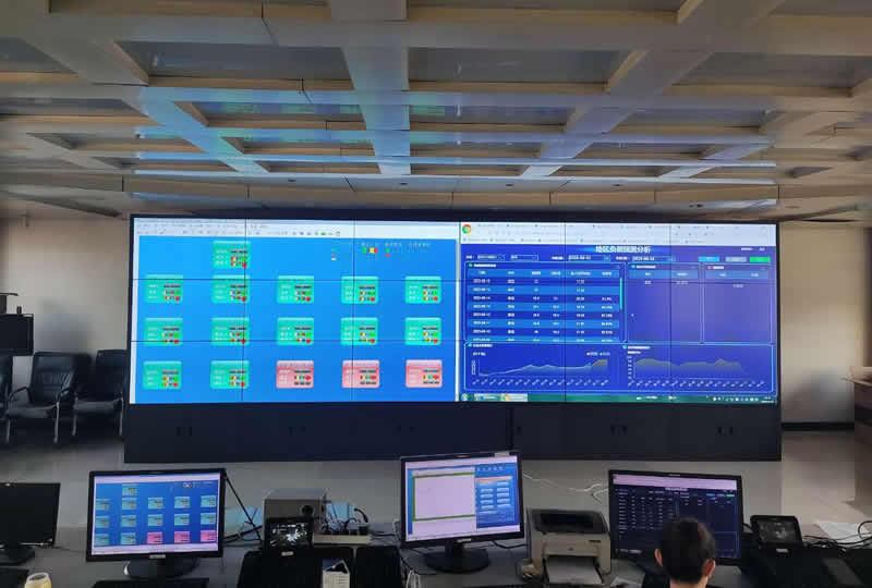 本案例中,維康國際為保定市某電力局提供一套指揮中心大屏,采用3行6列、55寸液晶拼接屏,雙邊拼縫為3.5mm,大屏幕顯示清晰,色彩柔和,支持24小時長時間不間斷的運(yùn)行工作。