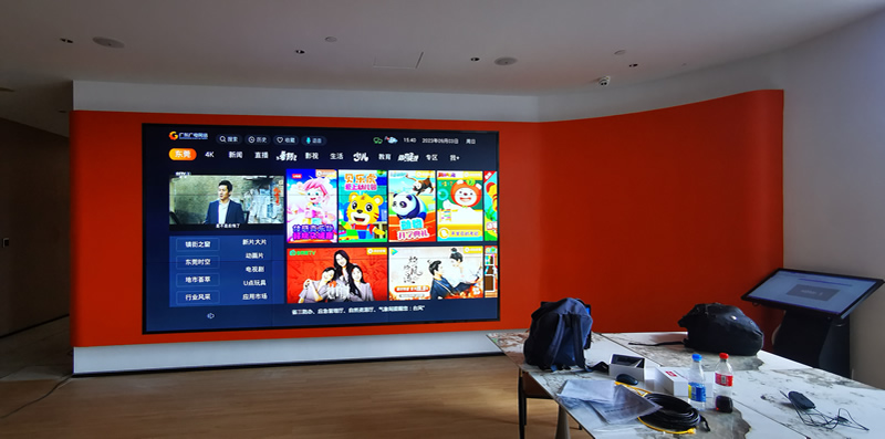 本案例中,維康國際為東莞市電視臺辦公室提供一套顯示大屏,采用3*3拼接、55寸液晶拼接屏,0.88mm超窄邊邊框,如上圖所示,屏幕顯示清晰,色彩豐富,一體化顯示效果好。