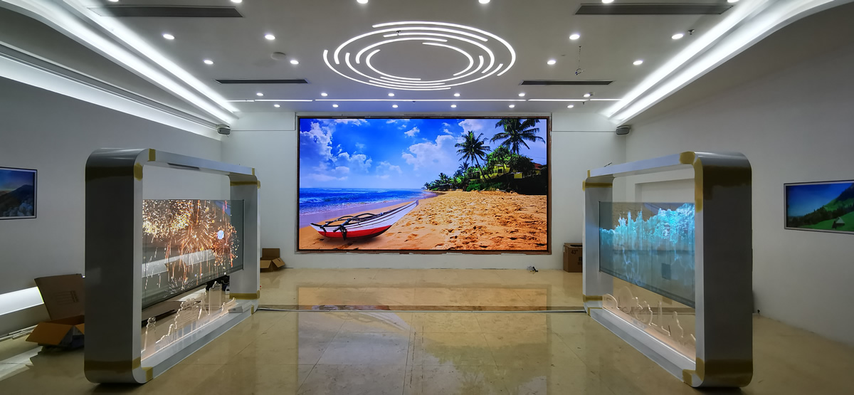本案例中,維康國際為清遠市煙草局展覽廳提供多套LED顯示屏,由P2全彩LED顯示屏和LED透明屏組成,如上圖多是,大屏幕顯示清晰,色彩豐富,視覺體驗效果好。