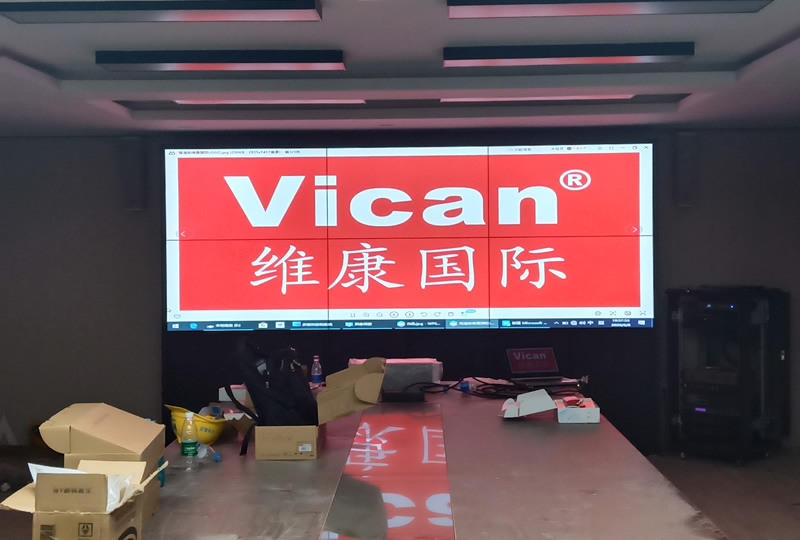 維康國(guó)際為北京天恒集團(tuán)安裝的這套會(huì)議室顯示屏,采用2x3、55寸液晶拼接屏,三星原裝面板,雙邊拼縫距離為1.7mm,主要用來(lái)會(huì)議顯示使用。