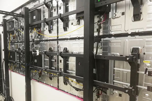 拼接屏在安裝時考慮到安裝方式與安裝空間的限制,只能在前面進行安裝及以后的檢修,多見于壁掛安裝、支架等安裝中,如果超過9塊屏拼接,考慮到后期的檢修與拆卸,常常推薦前維護液壓支架進行安裝。也就是在壁掛支架的前面增加一個可前后彈出的支架,再把拼接屏安裝在上面。這樣我們就可以輕輕一推,拼接屏就會自動彈出,方便技術(shù)人員進行拆卸以及更換屏體等工作。