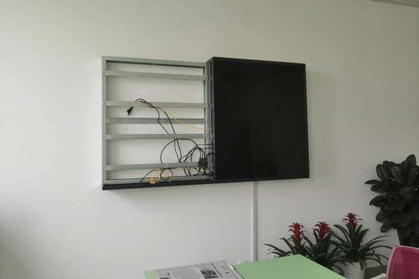 如此采用內(nèi)嵌式安裝,考慮到安裝及維護的便利,外框架內(nèi)沿距拼墻外邊(上下左右四個邊)每邊預(yù)留約10mm間隙,大型拼接屏還應(yīng)根據(jù)列數(shù)適當增加余量,包邊采用可拆卸的包邊。