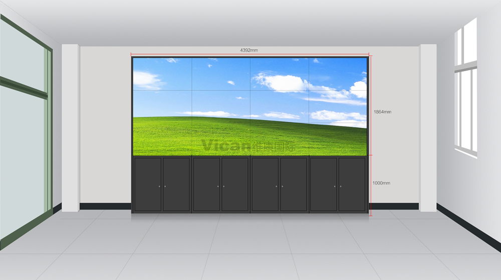 3x4機(jī)柜55寸無縫拼接屏尺寸效果圖