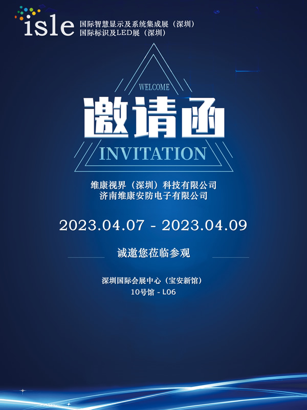 2023年isle深圳國際智慧顯示及系統(tǒng)集成展、國際標(biāo)識及LED展即將開啟,維康國際集團(tuán)旗下維康視界(深圳)科技有限公司、濟(jì)南維康安防電子有限公司誠邀您蒞臨參觀: