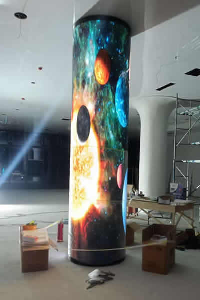 這種屏幕在商場、展館、寫字樓以及各種公共活動(dòng)區(qū)域等地方比較常見,即是在圓柱上安裝LED顯示屏,360度全方位都可以看到顯示畫面,當(dāng)然也有些一些客戶是在矩陣柱子上安裝的。LED圓柱屏的設(shè)計(jì)新穎、時(shí)尚,契合建筑物的造型,可任意拼接,它的應(yīng)用場所廣泛,是眾多媒體展示場所的新寵。不僅能夠多角度環(huán)視,而且消除觀賞死角區(qū),可以達(dá)到LED大屏顯示的效果。