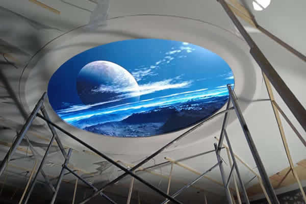 這種安裝方式主要應(yīng)用在展廳、展館這些展覽場合,即是在頭頂上方安裝LED屏幕,可以以圓形、橢圓形、矩陣等結(jié)構(gòu)安裝,給觀眾帶來更多新奇的體驗(yàn)。