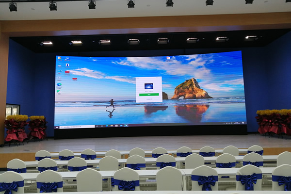 LED顯示屏在會議場合的應用,一般會采用小間距LED系列,如P1.8、P1.5、P1.2、P0.9這幾種規(guī)格。在分辨率方面,雖然比拼接屏的低一些,但是可以進行無縫隙拼接,有著更好的一體化顯示效果。