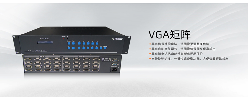 支持快速切換操作,支持一鍵快速查詢功能,方便查看矩陣的切換狀態(tài),具有掉電記憶功能帶有斷電現(xiàn)場保護(hù);