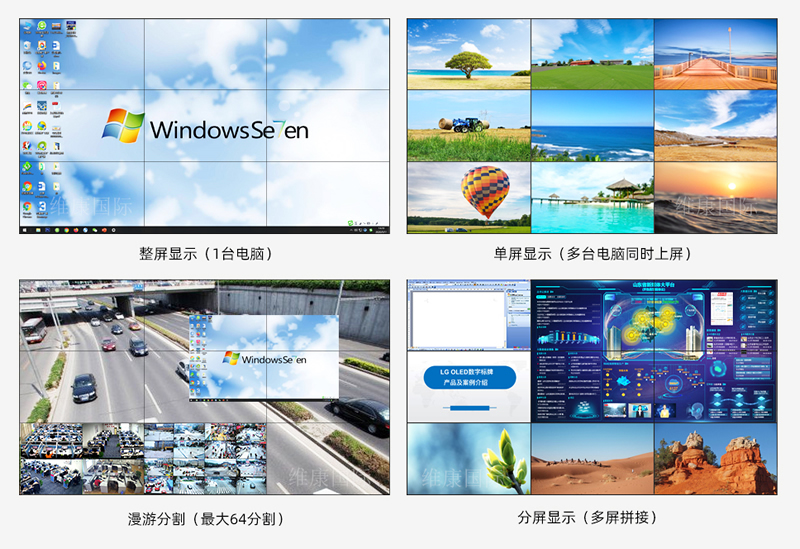 京東方液晶拼接屏是一種可拼接的顯示器,可以以單屏為顯示單位,也可以以全屏為一個(gè)單位,任意顯示多個(gè)圖像,并且可以分割畫面與跨屏漫游等。