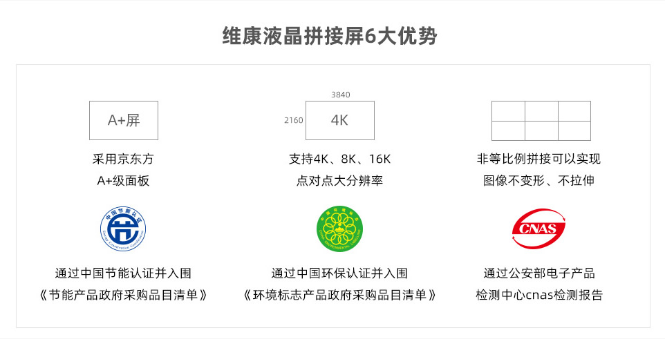 京東方55寸0.88mm液晶拼接屏通過(guò)了節(jié)能認(rèn)證、CNAS檢測(cè)報(bào)告、環(huán)保認(rèn)證、抗震防塵、CE、CB、FCC、ROHS、外觀專利、大屏軟件專利等。
