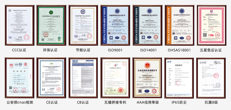 維康國(guó)際通過(guò)了ISO9001質(zhì)量管理體系、ISO14001、OHSAS18001、3C、節(jié)能認(rèn)證、環(huán)保認(rèn)證、公安部cnas檢測(cè)報(bào)告、抗震8級(jí)、防塵、CE、CB、FCC、ROHS、外觀專(zhuān)利、大屏軟件專(zhuān)利等,在支持客戶(hù)參與招投標(biāo)項(xiàng)目中有很大優(yōu)勢(shì)。