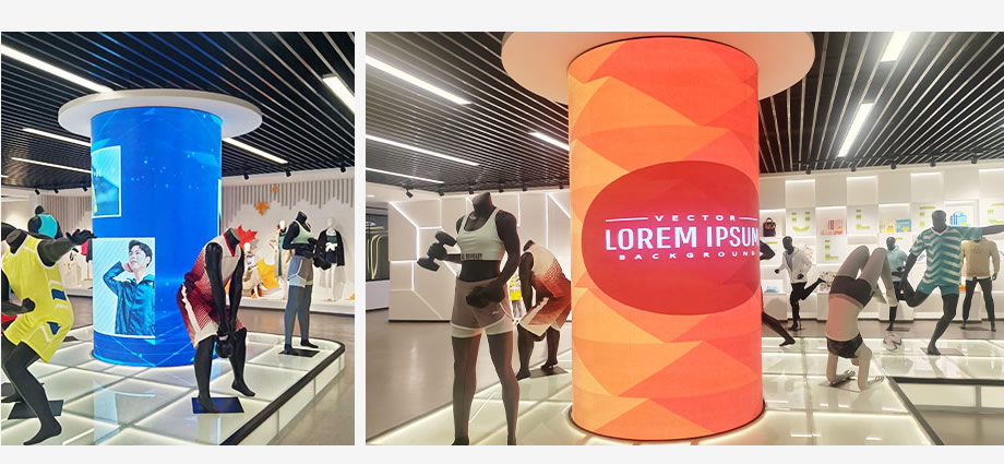 有一些展廳,由于圓柱比較大,所以還可以打造多組LED顯示屏,下圖就是安裝在某集團(tuán)展廳的一組采用P1.86的軟模組組成的圓弧形LED顯示屏效果,整個(gè)弧形更加自然。