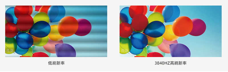 由于箱體是16:9比例,所以在拼接時只要保證等比例數(shù)量的拼接,整個LED顯示屏就不會發(fā)生變形,從而保證整體的顯示效果。如下圖,P1.53小間距LED顯示通過5*5拼接后即可達到一個1080P的分辨率效果。