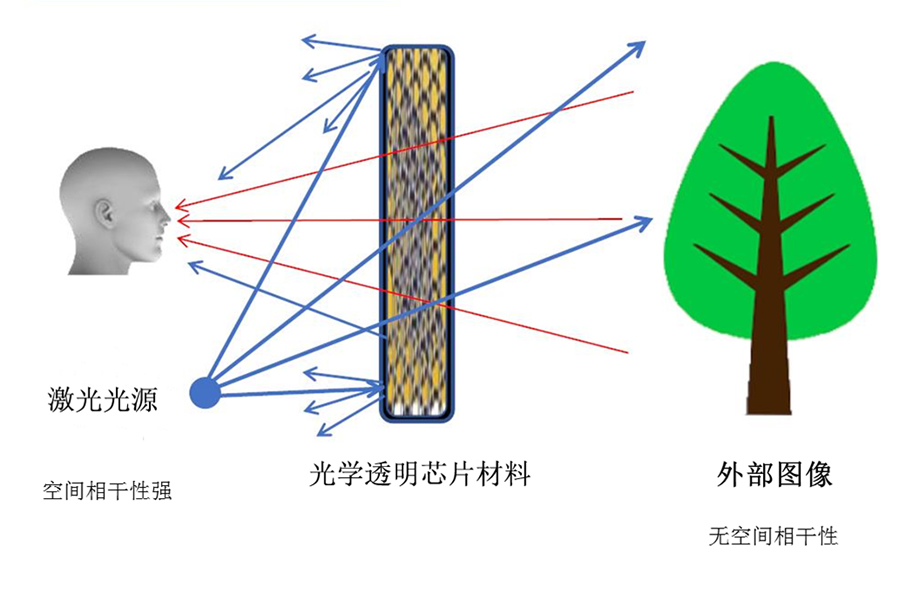 光學數(shù)字顯示技術(shù),對透明介質(zhì)材料進行多層結(jié)構(gòu)調(diào)整,只會對激光光源方向的光進行調(diào)控,對其他方向的光允許完全透過。從而實現(xiàn)全透明、高清晰的圖像顯示。
